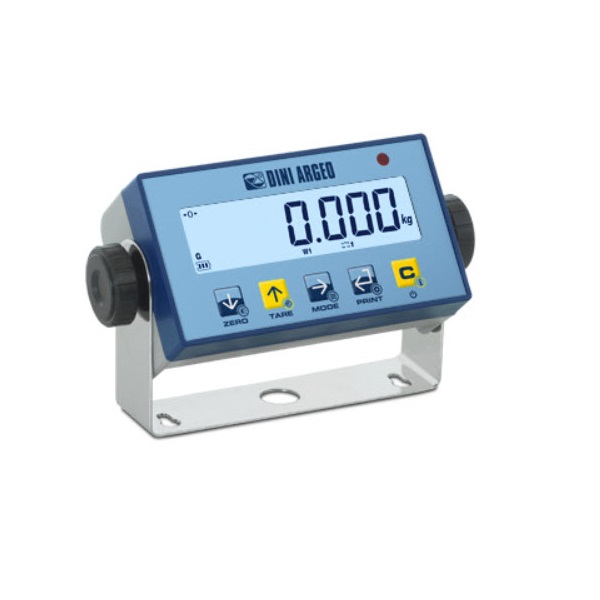 Digital weight indicator for industrial environments, easy to install, and use. The IP68 protection degree and the built-in long-life battery make it particularly suitable for automotive and mobile weighing applications. Standard fitted with a support bracket with adjustable inclination. CE-M approvable (OIML R-76 / EN 45501).