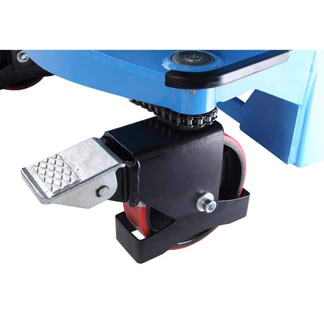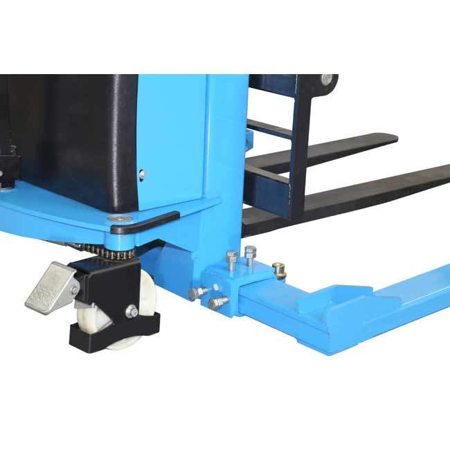 S15J Semi Electric Stacker has 1600W lift motor, heavy duty pump and control valve ensure the dependability of hydraulics. Built-in safety valve prevents overloading. Automatic Flow control valve blocks excessive pressure and provides variable fork lowering speed. Solid chrome plated piston rod guarantees smooth lift/lower operation Mast constructed of structural steel for enhanced stability, and optimal performance.