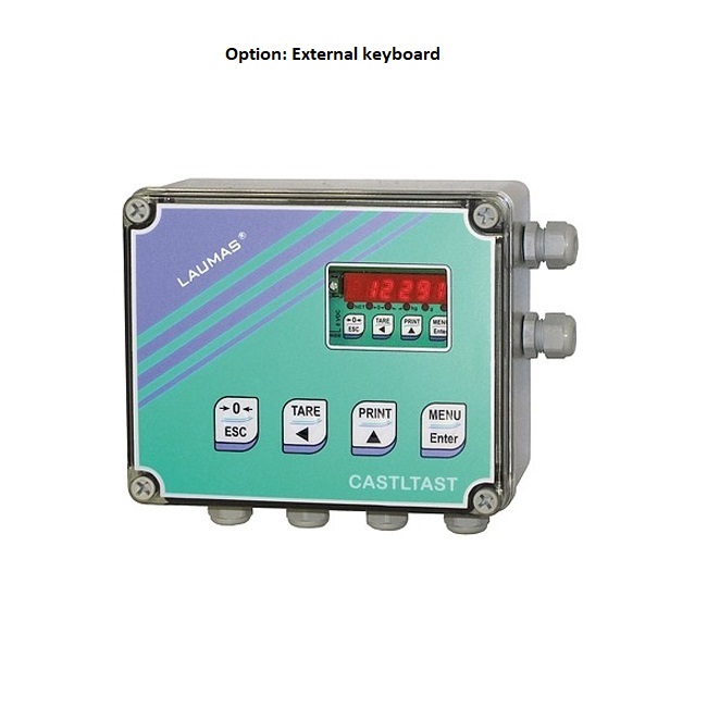 Weight transmitter/indicator with six-digit red LED display (8 mm height).  Four-key keypad for the system calibration. Six indicator led. Dimensions: 123 x 92 x 50 mm.