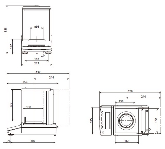 The ATX balance has built-in motor-driven calibration weights.